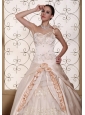 One Shoulder Champagne Ball Gown Wedding Dress For 2013 Hand Made Flowers and Embroidery On Satin