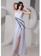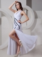 One Shoulder Chiffon Beaded High Slit Stylish Evening Gowns For 2013 Custom Made