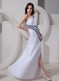 You will fall in love with this dress when you look at it at the first sight. This white prom dress features a asymmetrical neckline and one shoulder design with a cut along the strap, which Photograph echo with the slit from the thigh. The contrasting beadings also adds details to the midsection. You will be the most sexy girl in this dress!