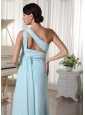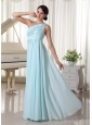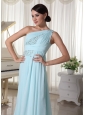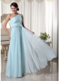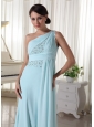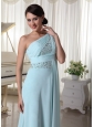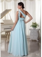 One Shoulder Chiffon Beaded Prom Dress For Custom Made Light Blue