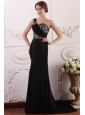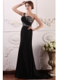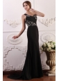 Home >  Prom Dresses >  Best Prom Dresses > One Shoulder Column Chiffon Black Sweep Train Beading Prom Dress