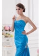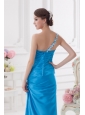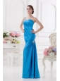 Home >  Prom Dresses >  Elegant Prom Dresses > One Shoulder Column Ruching and Appliques Teal Prom Dress
