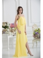 Home >  Prom Dresses >  Popular Prom Dresses > One Shoulder Column Ruching and Beading Prom Dress in Yellow