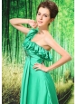This wonderful prom dress is simple and elegant! The flowing skirt falling from high waist has folds to pool to the floor forming a elegant train. One shoulder with many tiers of falbala will make you lovely and glamourous. A drapping fabric fall down to the front creating a fairy effect. This exquisite prom dress is made for the sophisticated girls!