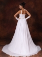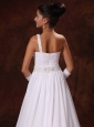 One Shoulder Empire Beaded Decorate Waist Chiffon Court Train Garden Low Cost Wedding Dress For 2013