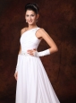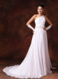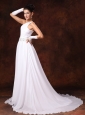 Simple while gorgeous this white wedding dress is! The whole dress is made from comfortable chiffon fabric and the fitted bodice is accented with one shoulder style and ruchings. The heavily beaded waistband defines your natural waistline and reveal your slim figure. The elegant skirt flows freely to the floor with a graceful sweep trian completes this design. You will get the most attention in your big day.