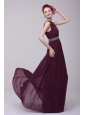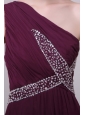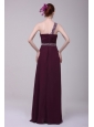 One Shoulder Empire Chiffon Beaded Decorate Full Length Prom Dress