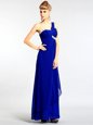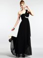 One Shoulder Green Sleeveless Floor Length Beading Zipper Evening Dress