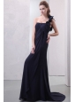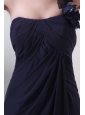 One Shoulder Hand Made Flowers Chiffon Navy Blue Prom Dress