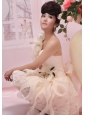 Elegant yet stylish!Heads turn back when you wear this amazing champagne dress in your special day. The one shoulder features the big romantic hand-made flower which is the same as the one in the waist area. Exquisite ruches on the top upgrades your taste and beautifies the dress. You will like the princess when you wear this A-line prom dress.