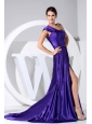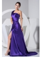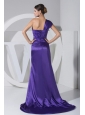 One Shoulder High Slit Purple Taffeta Brush Train 2013 Prom Dress