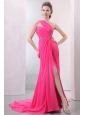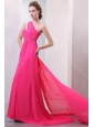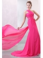 Home >  Prom Dresses >  Fashionable Prom Dresses > One Shoulder Hot Pink Chiffon Appliques Watteau Train Prom Dress