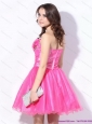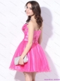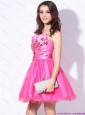 One Shoulder Hot Pink Short Prom Dresses with Ruching and Beading