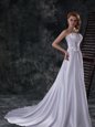 One Shoulder Lace Up Wedding Gowns White and In for Wedding Party with Lace Cathedral Train