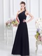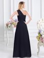 One Shoulder Navy Blue Chiffon Side Zipper Wedding Party Dress Sleeveless Floor Length Ruching