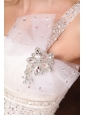 If you're looking for the quintessential fairytale gown, look no further than this one. This pure dress features beaded one shoulder strap bodice. Chic bowknot and exquisite beads on the top upgrades your taste and beautify the dress. The full length skirt falls from the body-hugging waist shaped a perfect A-line skirt. This special wedding dress is sure to impress at your big day. You'll be the belle of the wedding ceremony in this graceful dress.
