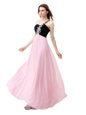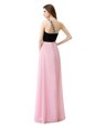 Home >  Prom Dresses >  Perfect Prom Dresses > One Shoulder Pink And Black Sleeveless Beading and Appliques and Ruffles Floor Length Prom Dress