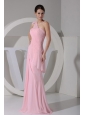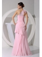 One Shoulder Pink Chiffon Floor-length 2013 Prom Dress