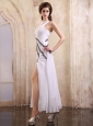 One Shoulder Prom Dress With Beaded and High Slit Ankle-length Chiffon