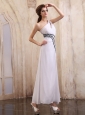 Make your prom a fairy-tale in this stunning prom dress. As we know, white dresses always enjoy great popularity in the market, which has stirred the mind of girls and ladies since very beginning. This ankle length dress features a bodice with ruched one shoulder and it looks very elegant. The exquisite beadings on the bodice are also eye-catching. The skirt falls down to the ground naturally. It is a great choice for you when choosing a dress.
