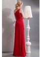 One Shoulder Red Chiffon Ruch Dama Dress For Quinceanera