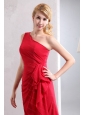 Home >  Special Occasion Dresses >  Dama Dresses for Quinceanera > One Shoulder Red Chiffon Ruch Dama Dress For Quinceanera