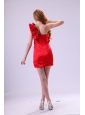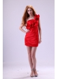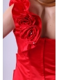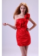 One Shoulder Red Prom Dress with Flowers Mini-length