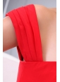 One Shoulder Red Ruche Watteau Train Prom Dress for Evening Party