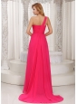 One Shoulder Ruched Bodice Customize Prom Dress With Beading Chiffon Watteau Train