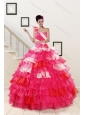 One Shoulder Ruffled Layers and Beading Multi Color Quinceanera Dresses for 2015
