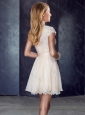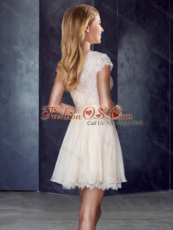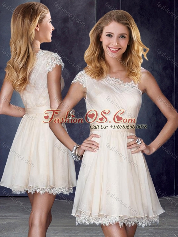 One Shoulder Short Champagne Prom Dress with Lace and Belt