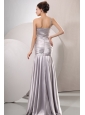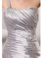 One Shoulder Silver Prom Dress with Beading and Ruching