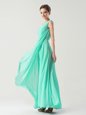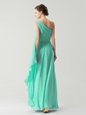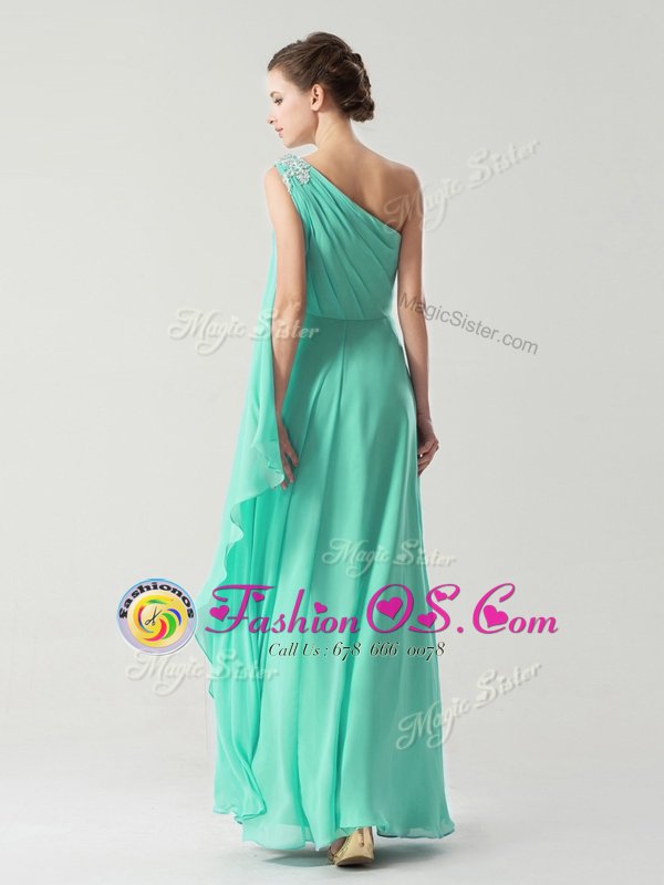 Home >  Prom Dresses >  Perfect Prom Dresses > One Shoulder Sleeveless Ankle Length Beading and Ruching Side Zipper Prom Party Dress with Turquoise
