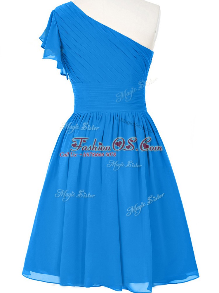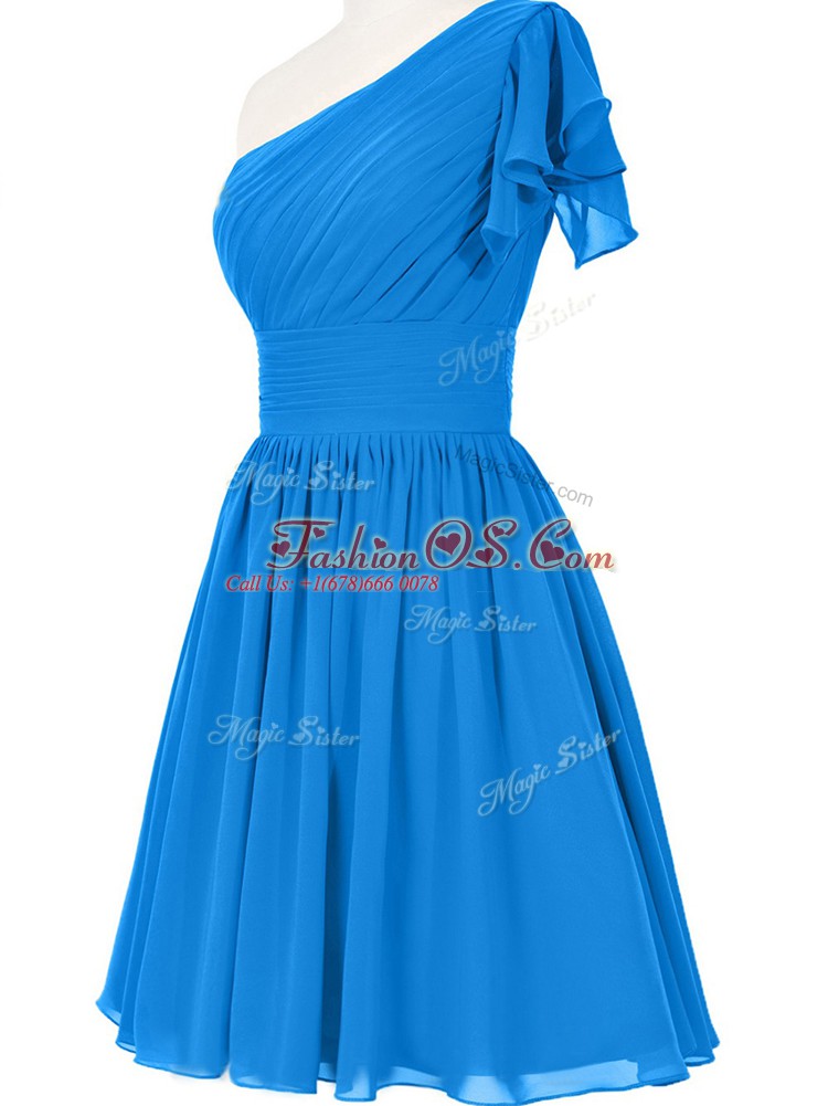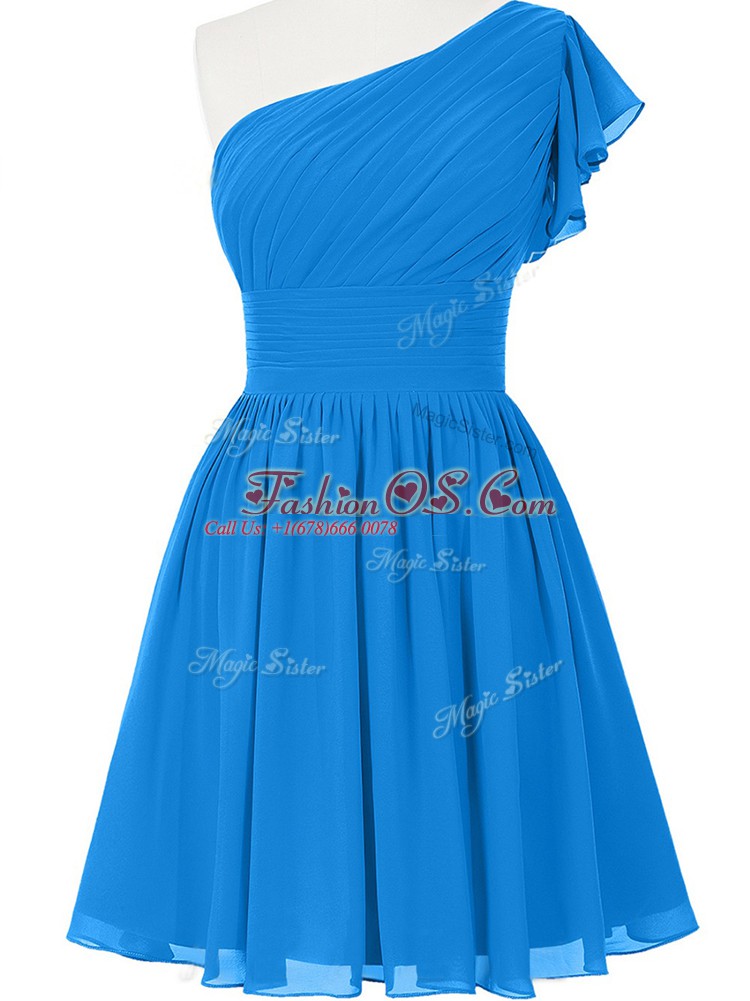 One Shoulder Sleeveless Chiffon Ruching Side Zipper