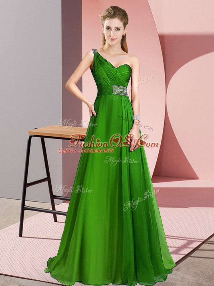 One Shoulder Sleeveless Homecoming Dress Online Brush Train Beading Green Chiffon