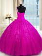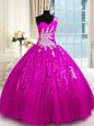 One Shoulder Sleeveless Lace Up Floor Length Appliques Quince Ball Gowns