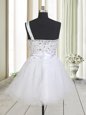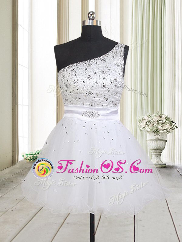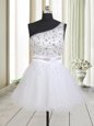 Home >  Prom Dresses >  Perfect Prom Dresses > One Shoulder Sleeveless Mini Length Beading Zipper Prom Evening Gown with White