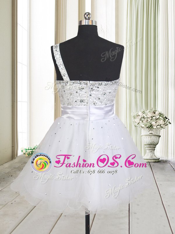 One Shoulder Sleeveless Mini Length Beading Zipper Prom Evening Gown with White