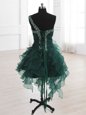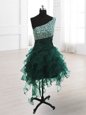 One Shoulder Sleeveless Organza Knee Length Lace Up Prom Evening Gown in Peacock Green for with Beading and Ruffles