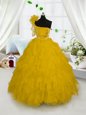 One Shoulder Sleeveless Side Zipper Little Girls Pageant Gowns Gold Organza