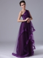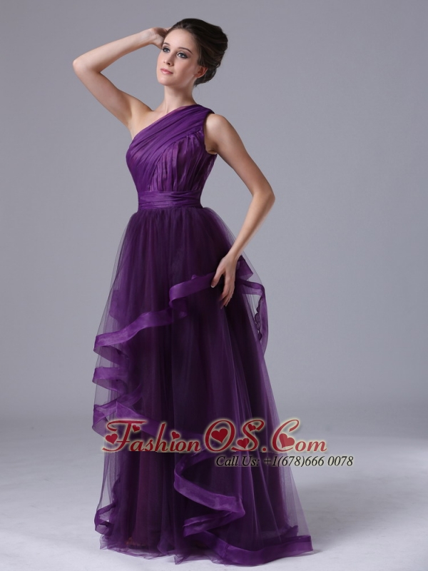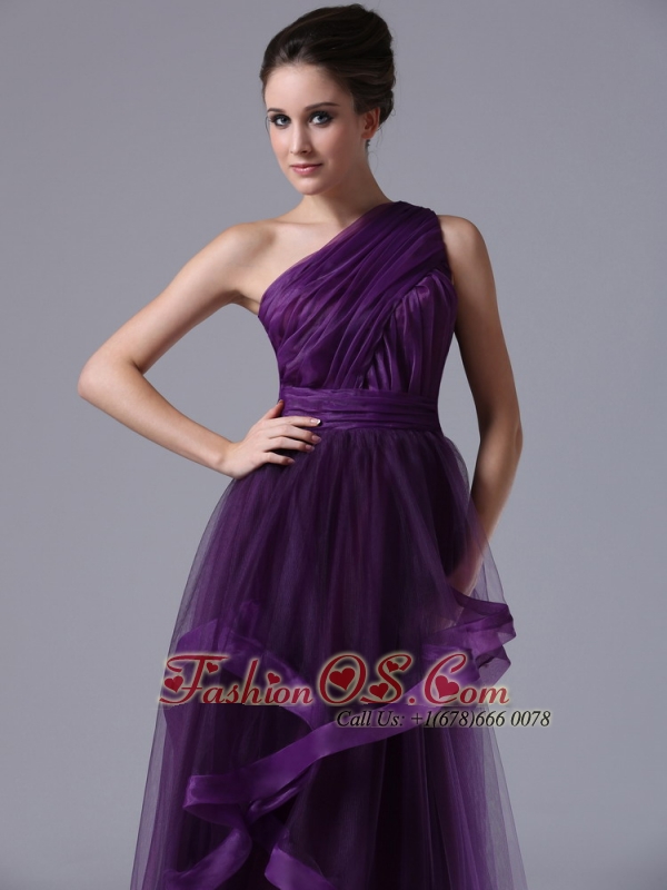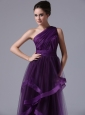 One Shoulder Tulle Empire Purple Ruched 2013 Prom Dress