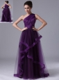 Home >  Shop By Color >  Prom Dresses by Color >  Dark Purple Prom Dresses > One Shoulder Tulle Empire Purple Ruched 2013 Prom Dress