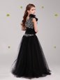 Home >  Special Occasion Dresses >  Cheap Flower Girl Dresses > One Shoulder Tulle Sleeveless Floor Length Flower Girl Dress and Beading and Bowknot