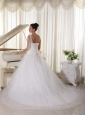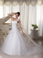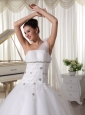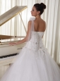 Silhouette: A-line Neckline: One Shoulder Waist: Fitted Hemline/Train: Watteau Train Sleeve Length: Sleeveless Embellishment: Appliques Back Detail: Lace-up Fully Lined: Yes Built-In Bra: Yes Fabric: Tulle Shown Color: White(Color & Style representation may vary by monitor. Wedding Venues: Garden / Outdoor, Church, Hall Season: Spring, Summer, Fall, Winter Keyword: Simple Wedding Dress, Buy Wedding Dresses Online, Bridal Gowns In USA
