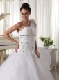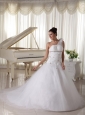 Warning: number_format() expects parameter 2 to be long, string given in /home/fashonos/domains/fashionos.com/public_html/includes/classes/currencies.php on line 52 One Shoulder Wedding Gown With Appliques and Beading Tulle Watteau Train-