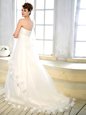 One Shoulder White Lace Up Bridal Gown Sashes|ribbons and Hand Made Flower Sleeveless With Brush Train