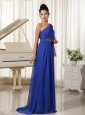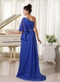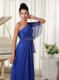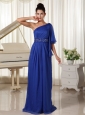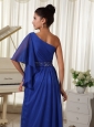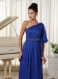 One Shoulder With 1/2-length Sleeve Beaded Decorate Waist Royal Blue Mother Of The Bride Dress