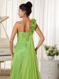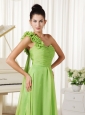 Home >  Bridesmaid Dresses >  Elegant Bridesmaid Dresses > One Shoulder With Hand Made Flowers Chiffon Bridesmaid Dress Watteau Train Spring Green