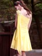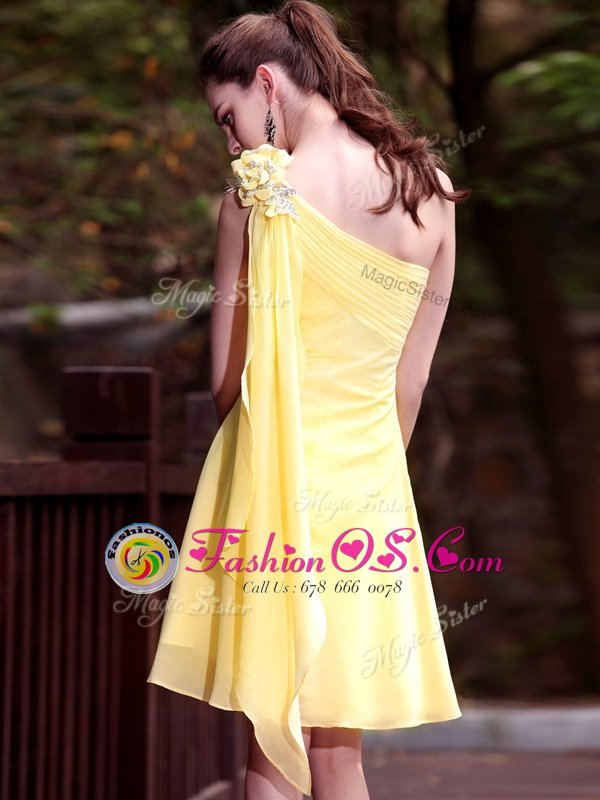 One Shoulder Yellow Sleeveless Hand Made Flower Mini Length Prom Homecoming Dress