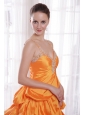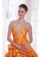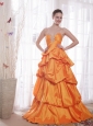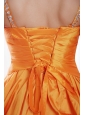 Orange A-Line / Princess Straps Floor-length Taffeta Beading Prom Dress